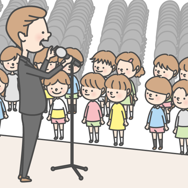 学校の みんなが 集まって 大切な 話を 聞く 集まり